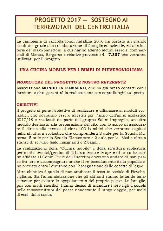 SOSTEGNO AI TERREMOTATI DEL CENTRO ITALIA